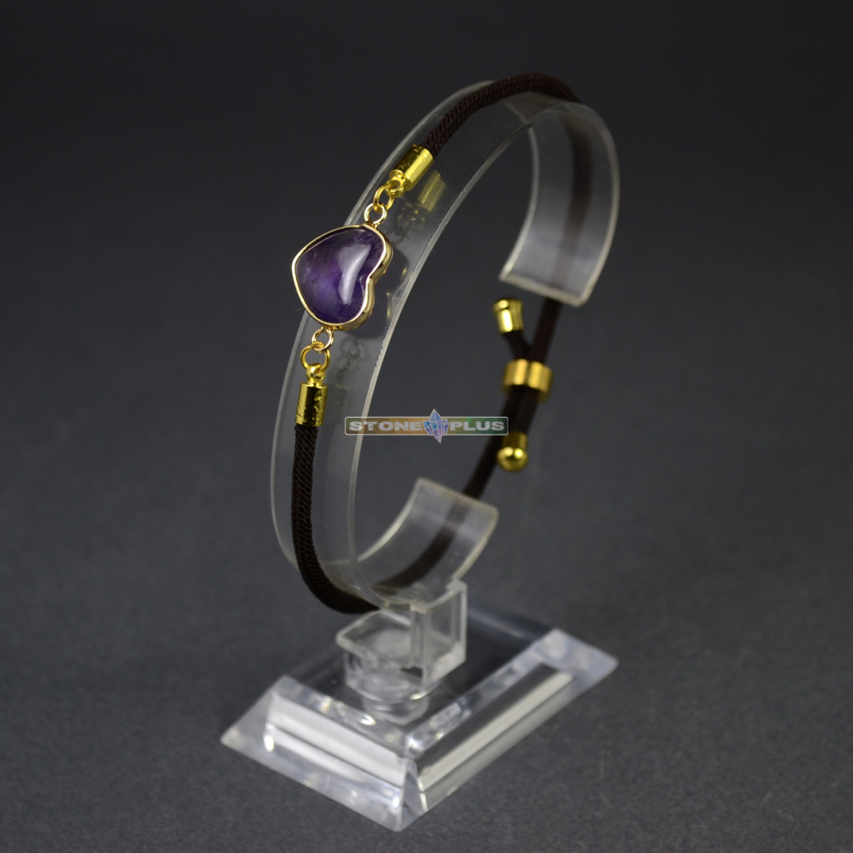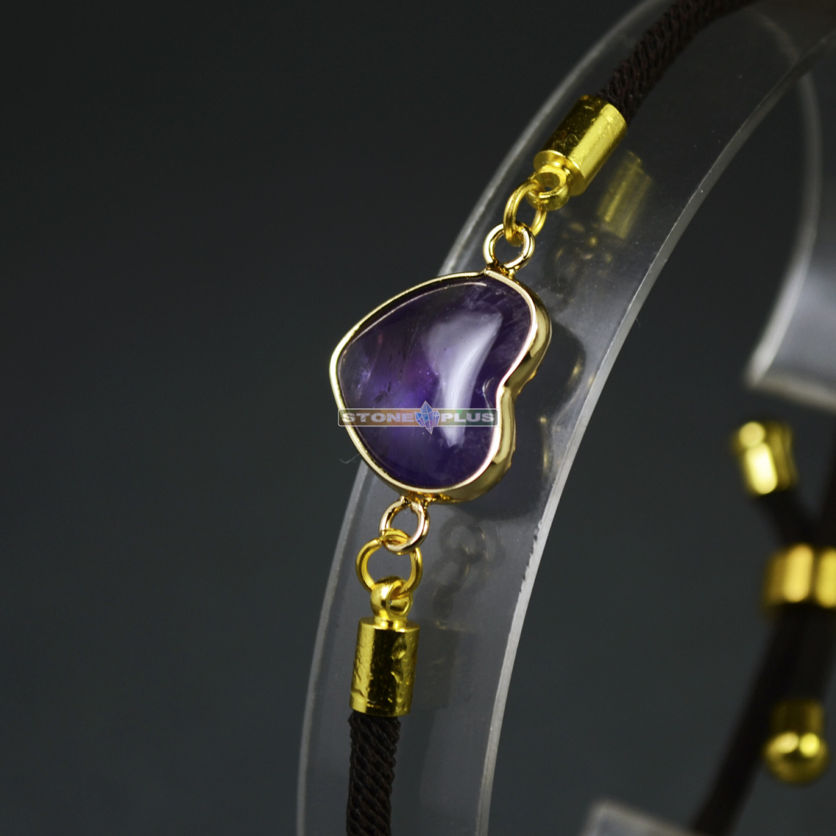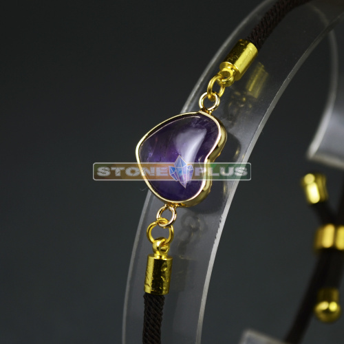 [~NAME] => Браслет Сердце на шнурке с камнем Аметист