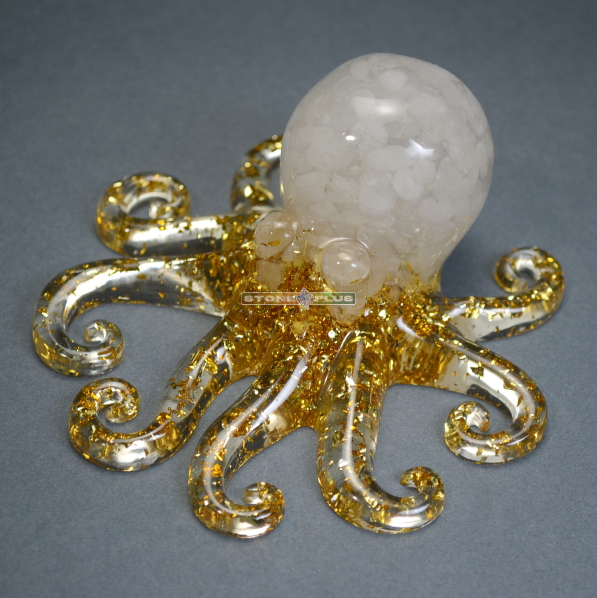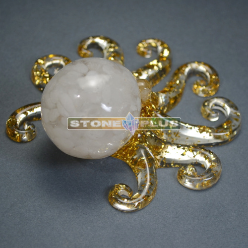 Фигурка "Осьминог" с горным хрусталём и эпоксидной смолой 4.5*10 см