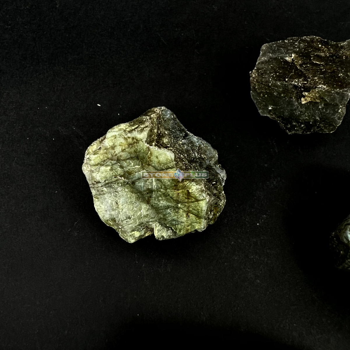 Лабрадор известен своим уникальным оптическим эффектом иризации, которую называют лабрадоризацией. При повороте кристалла на его поверхности вспыхивают синие, зелёные и золотистые отливы. Это свечение напоминает северное сияние, застывшее в камне. Поверхность тщательно отполирована до гладкого состояния, что полностью раскрывает глубину и блеск минерала.